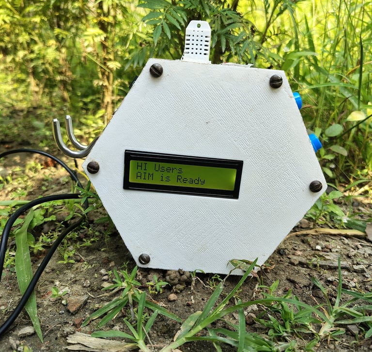 The Agriculture In-Situ Monitor (AIM) is a product developed by Harit Vikas Technologies. AIM is a sensor-based system designed to monitor various environmental parameters crucial for agriculture, with the ultimate goal of enhancing sustainability and transparency in carbon management. The AIM sends data to the cloud using various telemetry options. This data is visulized in CRAVE.